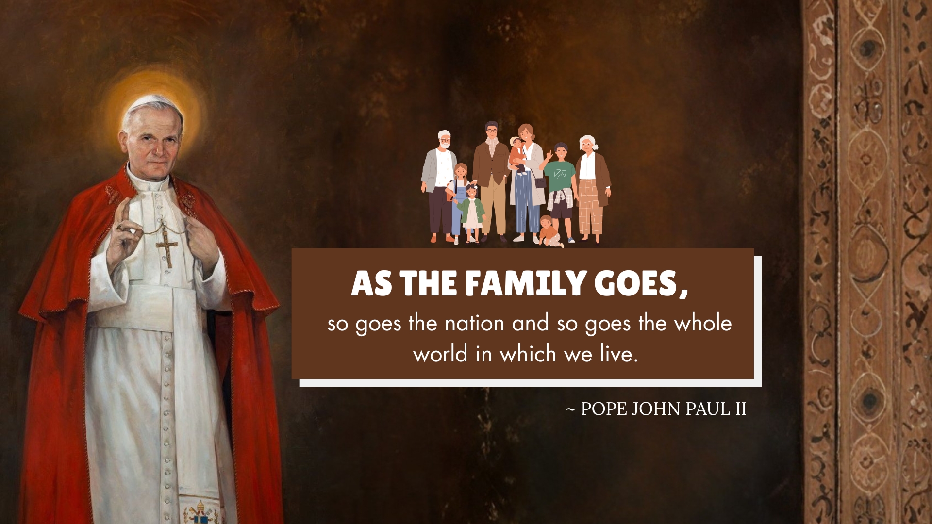 As the family goes, so goes the nation and so goes the whole world in which we live.
